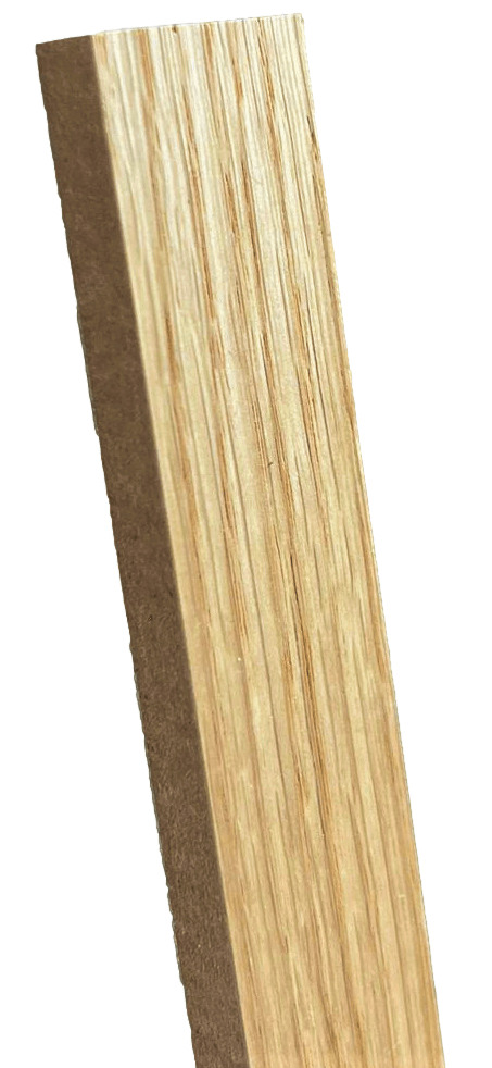 Z tvrdé hrubé plsti, tkané textilie absorbující zvuk. Ostatní lišty jsou z MDF nosiče dýhovány přírodní dubovou dýhou nebo fólií.