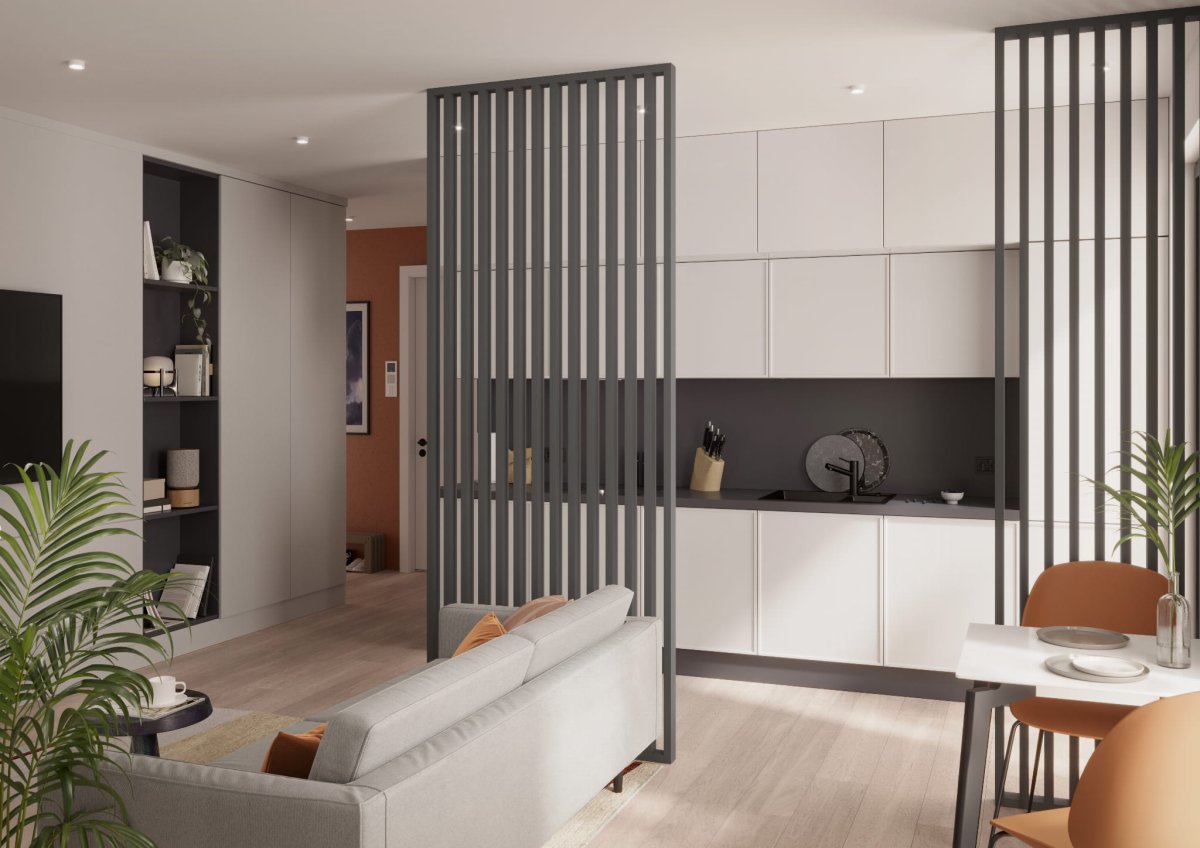 Dělící stěna z dřevěných lamel je stylový a zároveň elegantní způsob, jakým lze místnost vizuálně rozdělit na různé části.